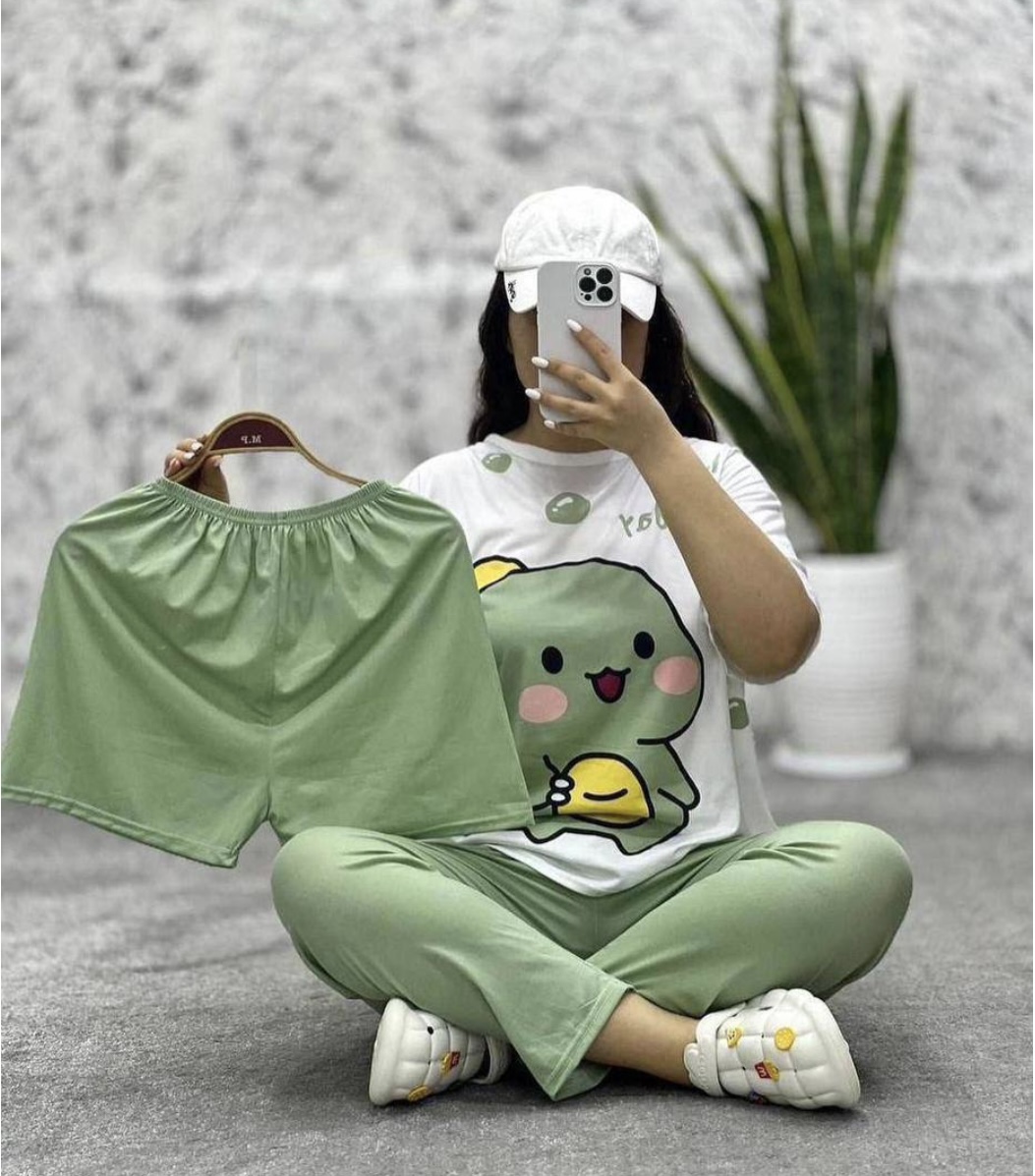 فری سایز مناسب 36 تا 46 جنس نخ لاکرا گیاهی نرم لطیف جنس تیشرت لاکرا جنس شلوار پنبه ای نکته:(جنس مقدار خاص خودشو پلی استر داره و به مرور رنگش میره)